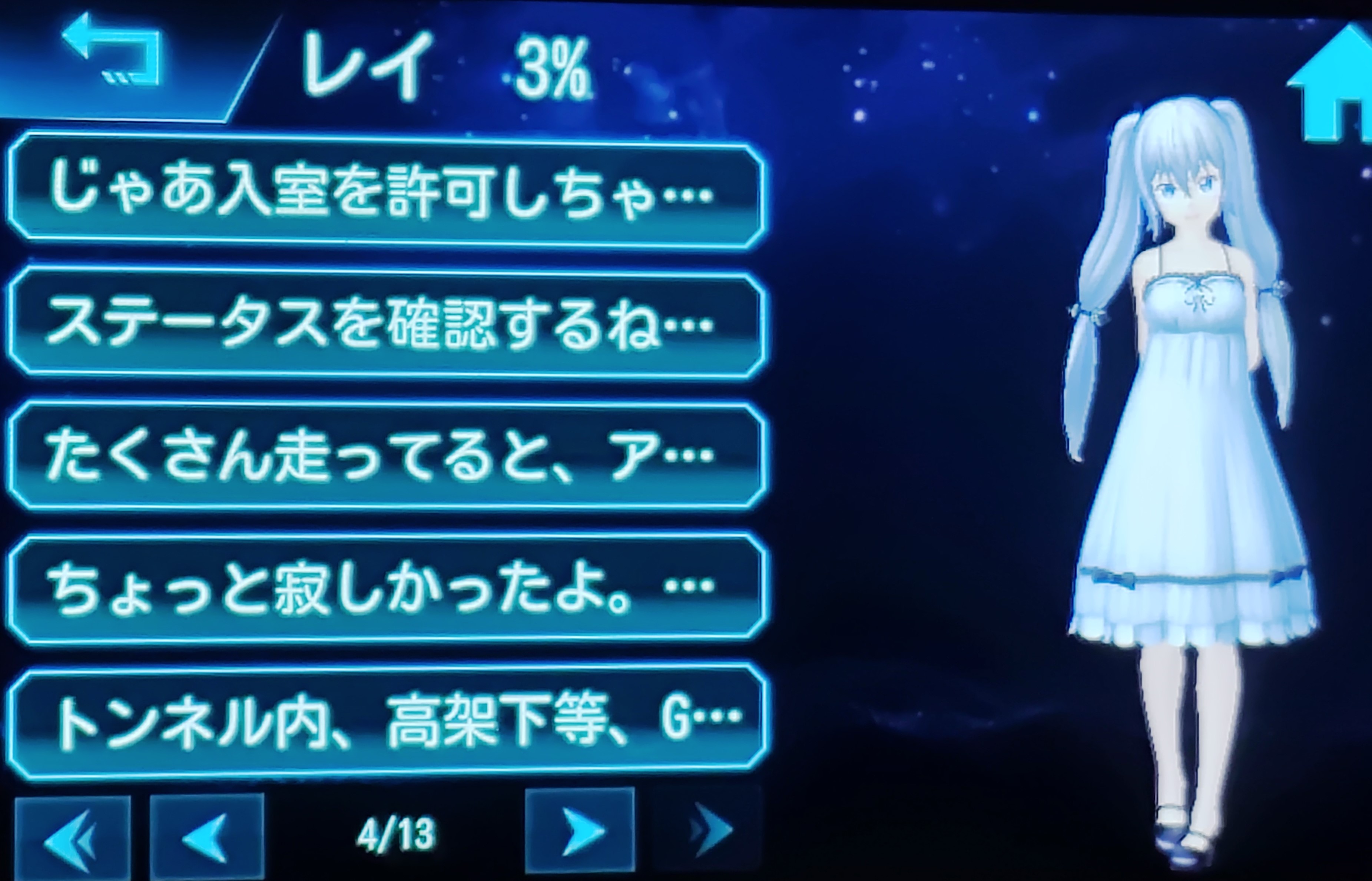 今回わかりやすいなと思ったのは、これまでしゃべったレイのセリフがリスト表示されること。あと、何%開示されているかってわかることでしょうか。